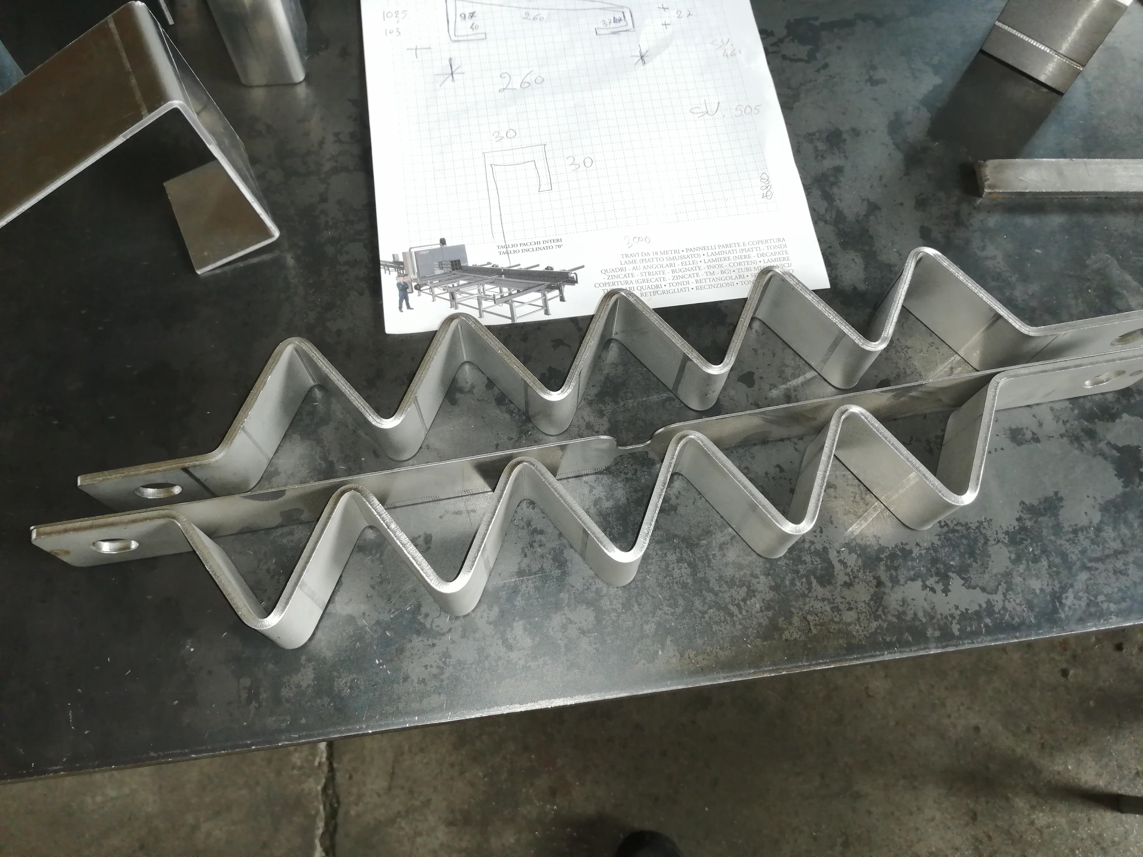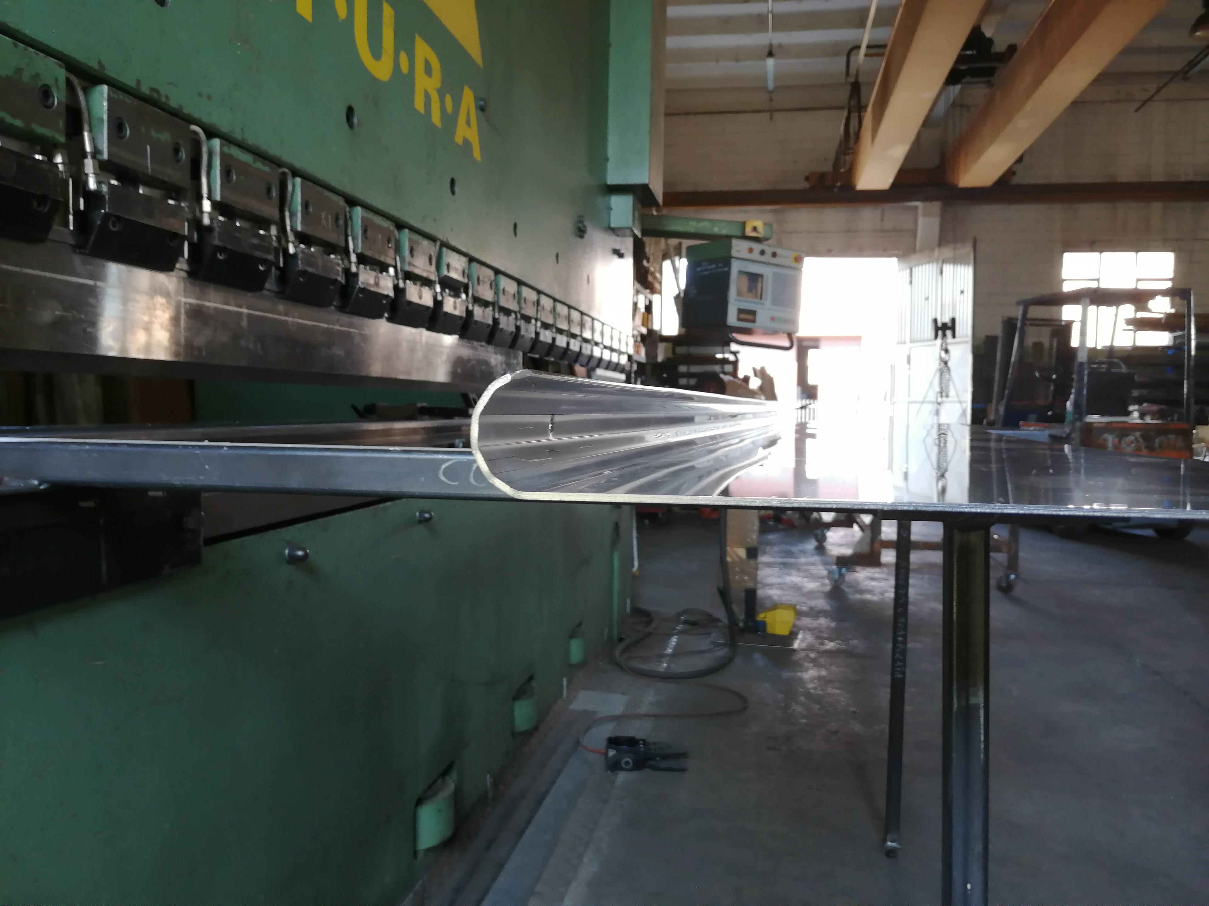 Grazie alla nostra piegatrice Warcom 6320 Ton. 4 assi, pieghiamo particolari fino a 6 metri di lunghezza per una varia gamma di spessori.